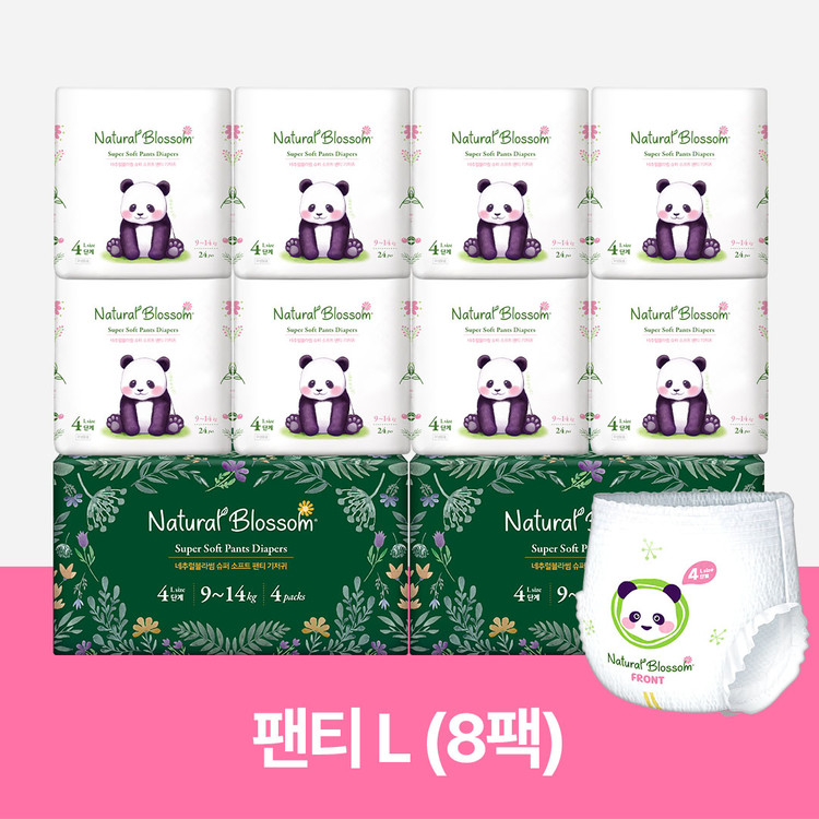 네추럴블라썸 비건기저귀 팬티형 4단계(L) 24매X8팩 / 팬티기저귀 밤기저귀 기저귀추천