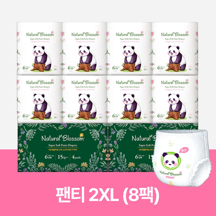 네추럴블라썸 비건기저귀 팬티형 6단계(2XL) 20매X8팩 / 팬티기저귀 밤기저귀 여름기저귀 기저귀추천